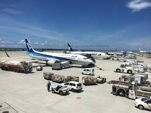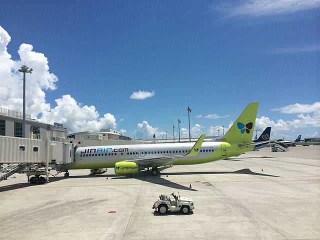 北京去冲绳一周才两班直飞,周三和周六~不能误机呀!今年还打算去塞班,也有直飞,但多半被旅行团包了,自由行似乎只能选择韩亚的转机。北京到冲绳三个多小时的飞行也觉得有点长~冲绳,晴空万里~隔着玻璃都那么通透!不过下了飞机就有南方潮热感觉。。