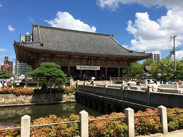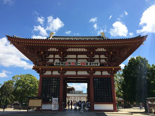 之后我们坐乘阪堺电车回到天王寺站,从天王寺站走路前往四天王寺,上次来大阪时间不够没去。今天去的时候还赶上法师做仪式,大家排着队到法师面前,法师用一个红布抱着的东西压一下头部。我理解应该是祝福吧,反正我跟老妈也凑个热闹,赶上了个尾巴~感觉挺幸运的。。。