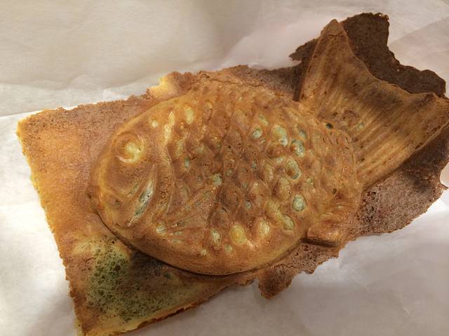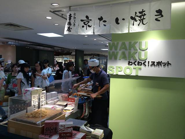 从大阪港回来我和老妈直接去了高岛屋,在高岛屋底下1层有个卖鲷鱼烧的,买了抹茶红豆口味的,我觉得很好吃,不是很甜。因为不饿就买了一个,但是也好想尝尝另外两种。其实买抹茶红豆口味是因为只有这个是中国字的,其他的都看不懂,哈哈。