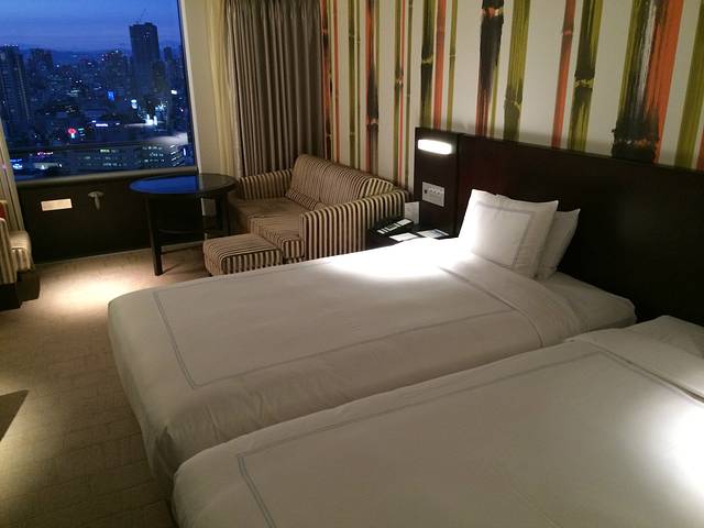 我们这次的房间在30层,看夜景绝佳。房间很大,而且有个窗户可以看一点通气,我和老妈都觉得特别好。酒店楼下就有好几个商场,还有高岛屋。找个地方吃饭太方便了。。。呵呵