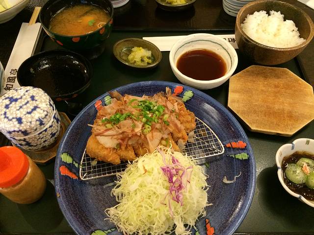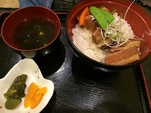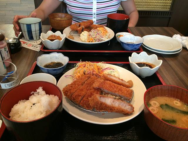 下午五点多回到酒店,老妈已经嗷嗷喊饿了,吃饭走起!就近又是楼下的“我那霸”餐馆,今天失策的要了两份猪排饭~显然有要吃恶心的节奏~猪排肥肉有点多呀~不过配上餐厅的自制调料还挺好吃的。看来好吃的东西也不能老吃,特别是油炸的,哈哈。。。