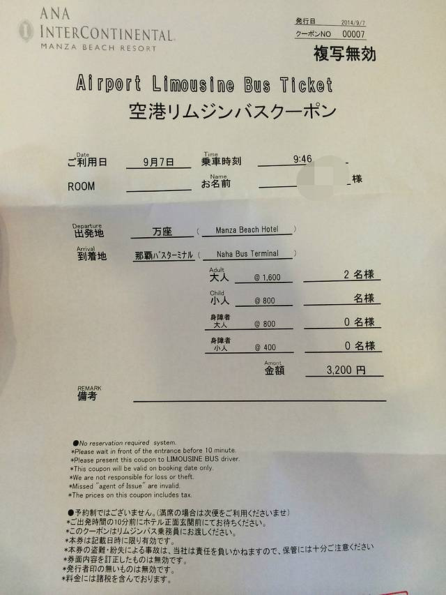 收拾完东西准备走人啦!办理日本的三年多次往返签证还要让入住冲绳的酒店给盖章确认,保证确实来了,之后再把这个返给大使馆,这样这个签证才算激活~从酒店继续搭乘告诉大巴前往那霸~这次从酒店到那霸巴士总站一个人1600日元。