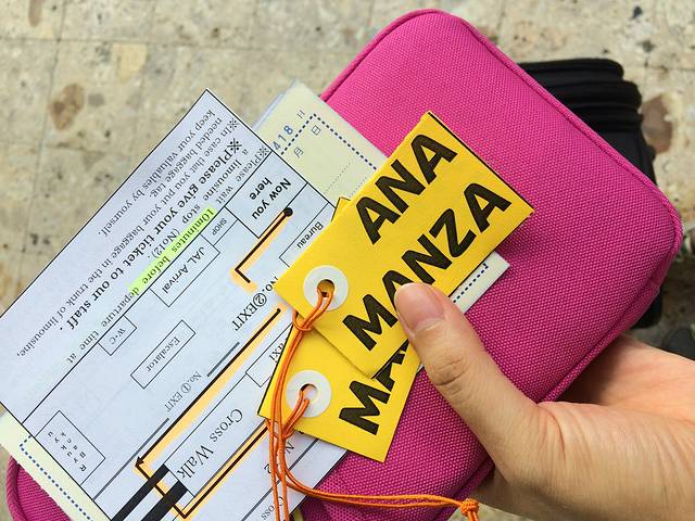 到了机场走的是国内航班,做的ANA的飞机。发现他们不检查身份证明的,护照看都没看。而且check-in和托运行李分在两个地方,有点不方便。到了机场柜台,人家说我们的那个航班预定没有我们的信息,本来的13:50的飞机只能改在14:45了。后来找ANA的朋友查了一下,说旅行社给取消了。想必是因为老妈腿坏了以后问旅行社能不能改期什么的时候他们给误操作了,总是,只要能飞就好。