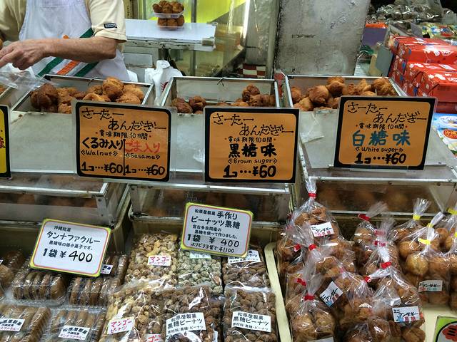 冲绳还有个有名的果子,名字不详,我感觉就像麻团一样,只不过外面没有芝麻,有各种口味,白糖、黑汤、香蕉。。。。逛街真是体力活,手术后在家歇了两个月,这是第一次溜达这么长时间,腰酸腿疼脚丫累!!!