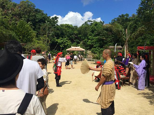 第三站:琉球村,属于民俗村。不大,不过还算值得一来。表演挺有意思,最后还帮大家免费照相~表演的狮子会象征性的用嘴咬观众的脑袋,我理解应该是表示祝福吧~不过跑到这个小弟弟面前把他吓的直躲~~节目演完工作人员会帮你和演员们合影,人家安排的很好,而且因为太热,工作人员还帮游客扇扇子。我很少在国内旅行,因为一点:人多!!!说实话就是因为人太多,很多细节上的东西是完全不可能达到的。。。