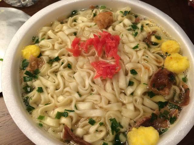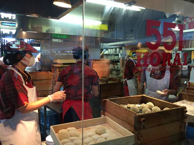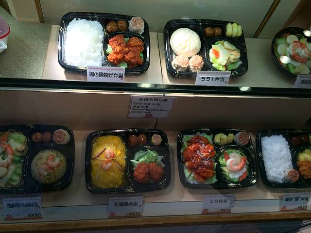 拿到行李以后发现机场出口就有一个蓬莱包子551。上次在大阪时间太短没有吃上,这次赶紧补上。因为中午也没吃饭,所以和老妈决定先吃了饭再去酒店。我看很多人在排队所以我也一起排着了。其实排队的是外卖打包的,店里可以直接点餐,价格不一样,外卖的东西不允许在店里吃。我以为要在这里点餐在店里吃呢,哈哈。结果害得我们在店里吃的面条,包子只能拿到酒店才吃了。老妈觉得它家的汤面很不错,因为有白菜。我点的那个拌面不好吃,全是淀粉!