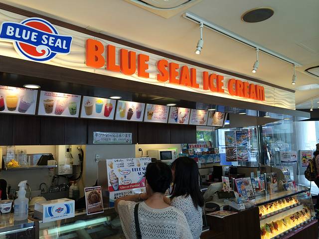 那霸最繁华的也就国际通了,购物一条街,主要都是买特产的,以及吃饭的。今天又是潮热超热的!一直在吃中药,本来不应该吃冰淇淋的,但是在太热啦!Blue Seal是冲绳特产,很多连锁店。。。我们连吃带拿的,吃了人家冰淇淋又往自己带的水杯里面灌了两壶冰水~~哈哈~~