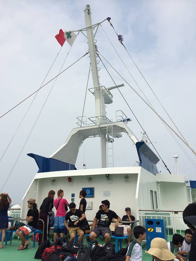原来以为这里就是游泳的,结果发现原来是浮潜的,虽然珊瑚不是那么多彩的,但是还是有很多鱼可以看。12点不到下的海,游一游,上上岸,再游一游,两个半小时就这么过去啦!结果起水以后发现等着洗澡的人好多,300日元10分钟。强迫症怕误了3点回港口的汽车,穿着泳衣在外面水龙头简单洗了脸、腿和胳臂~按理说10多分钟的路程,3点出发到港口,4点船才起航,真是有点浪费呀。。不过有可能是为了人多的时候再掉头回去拉人留出的富裕吧。。。