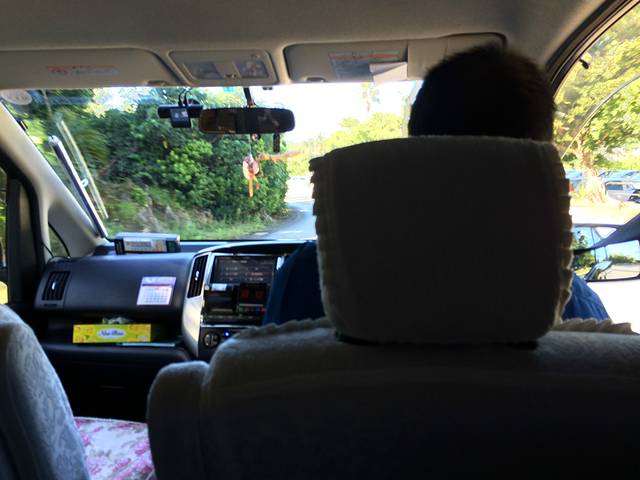 在酒店服务台让工作人员给交了一个taxi包车,两个人是按照小型车算的,觉得可能大概是5小时,14500日元。费用是记在房间里的,等结账的时候再说。小等了一下taxi就来了,是个日本的大叔。这位大叔应该知道我们中国人,还选了一个中国中央电台的广播,可惜是宝岛电台,说的都是闽南话,真想跟他说我听不懂呀。。。跟大叔用简单的英语交流,他也说日语,老妈总问我他说什么呢,因为我似乎听明白了,其实我也不懂,只是礼貌性点点头迎合一下,哈哈。。。。