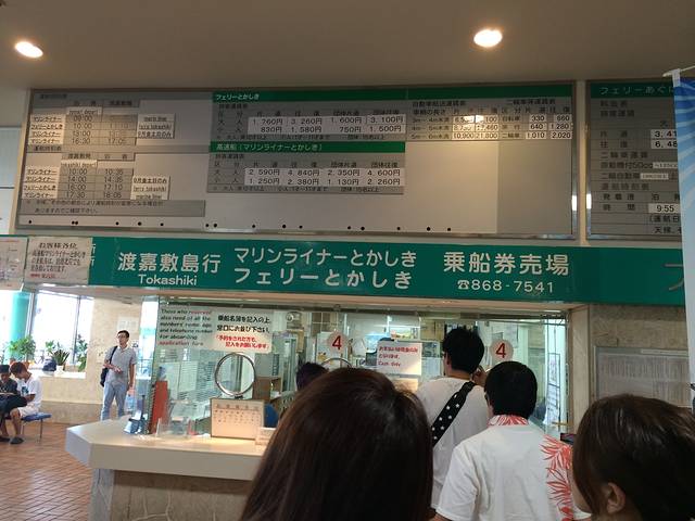 从酒店直接打车去那霸港口,在大厅一层买票。之前我看的是说在泊港码头买票,结果去了人家说实在那个主要的港口卖票,结果只能走过去,幸好不算太远。从那霸港口出发前往渡嘉敷岛有快船和慢船,快船半个小时,慢船一个小时。快船位子少,没有预约有时买不到。我们做的是10点出发慢船,路上吹吹海风,一个小时很快就过去了!