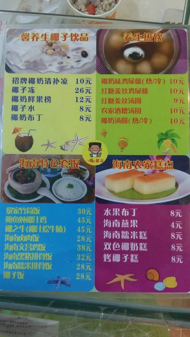 我大爱的陵水酸粉,8到12元一碗,超级好吃,很酸爽,哈哈。他们家还有卖椰奶清补凉的,个人感觉比一馨甜品家的好吃,而且给的分量很足,想吃哪些水果什么的,可以让多放会给放很多,就是他们家态度比较一般,可能生意好,忙不过来吧。这次和老公在三亚玩,去他们家吃了3次,每次都买了清补凉,他们家晚上11点多了,还开着门,门口的桌椅都坐满了人。离开三亚,唯一想念的就是椰奶清补凉了。