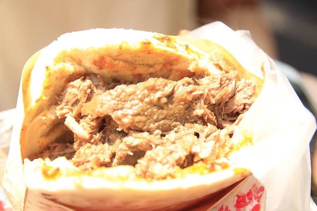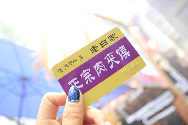 停下车走到北院门也不是很远,也就5分钟的样子。一进回民街,满满的人啊,而且好多烤肉的,烟很大,有点呛人。我们先看到了老白家肉夹馍,排队人那么长,好奇心驱使,我们也排上买了一个,15一个,排了足有半个小时。拿到手,我和老公研究了一下,和青岛卖的肉夹馍比起来,就是肉多点,没有青椒,口味没有很惊艳的感觉。他们家肉夹馍可以真空包装,说是可以存放一个星期,本来想买点回去给老人吃,后来吃了一个觉得一般,走的时候就没有再买。