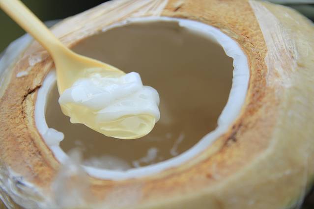 椰奶冻很好吃,椰子壳上的肉肉还可以垮下来混在椰子冻里面吃,好棒,现在回想起来都好想吃。这是这个打开要快点吃,放在室温几个小时就坏掉了。