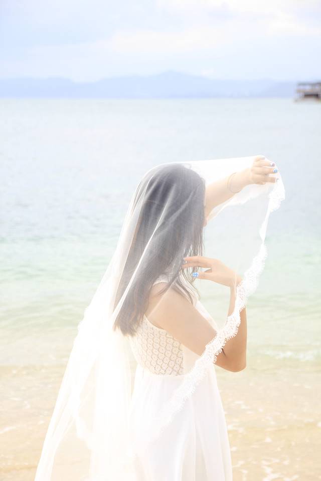 本来想带着头纱拍点类似婚纱照感觉的,但是天公不作美