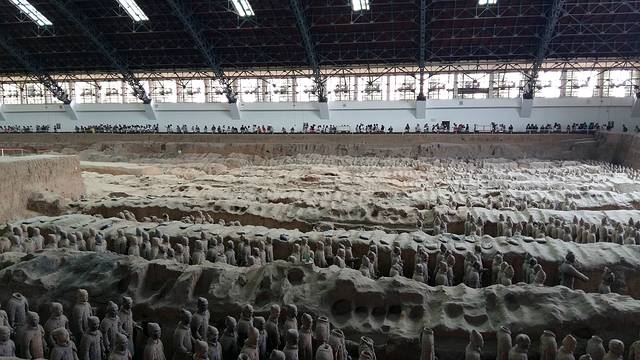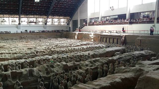 最后说回正题,看兵马俑的外国人很多,外国人都是赞叹连连。我和老公看完,也是觉得很震撼,震撼的不是兵马俑占地多大,而是兵马俑的制造工艺反映了中国人的冶炼技术等等是那么的精湛,很多现在都失传了,并且还有很多现在人也研究不透的工艺。就单单锁链,活扣这些小细节都做的十分精细,让我们从心底感叹古人!更不用说兵马俑的武器技术、排兵布阵这些就更有学问,我也就说不清楚,只有大家自己去看了,才能体味。