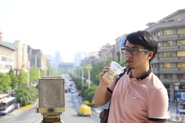 登上钟楼,幸好买了个饮料,热爆了!真没想到,4月的西安就29度了!!