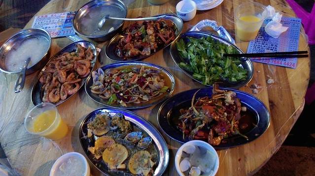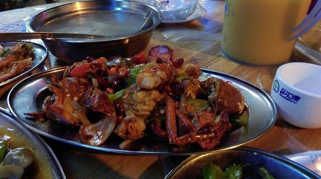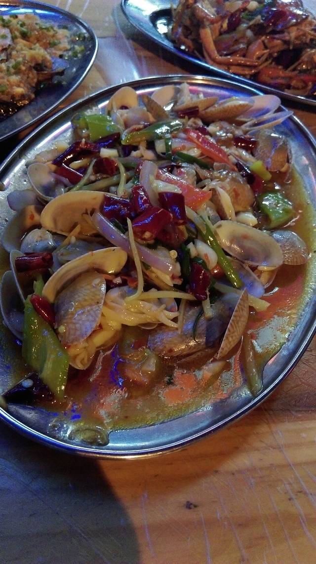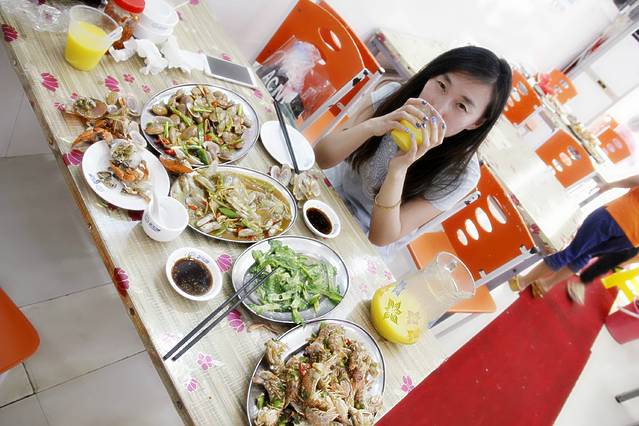 第一市场的海鲜加工店都在侧门对面的一条街上,文昌糟粕海鲜店在最尽头的地方。到了店门口,一个年轻的小伙子就带我们去第一市场买海鲜,我们买了和乐蟹、芒果螺、皮皮虾等120元,加工费70元,本来想用团购或者折扣,可惜都要加工费100元以上才能用,只能团100元的卷50元,加上点了四角豆30元和芒果汁35元,最后一桌也200了。不过菜式很干净,口味很好,回青岛以后,回想起来还会流口水。