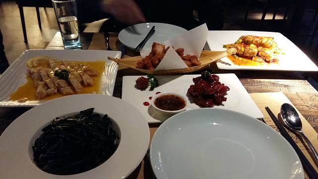 我之前做了攻略,选定了要在这里吃国民教父韩寒开的餐馆——遇见你很高兴。不过这家店着实不太好找,在2楼的最尽头,我和老公转了1圈才找到。餐厅人很多,貌似其它家都没有他们家生意好。店面装修很小清新,灯光比较暗,桌上放着小夜灯,来这吃饭还是很有调调的。大众点评上有他们家代金卷,我团了2张,点了一桌,他们家菜盘子都好大,菜量不大,摆的我们的2人小桌满满的,周围上海人都用异样的眼光看着我们一盘一盘消灭掉,哈哈。经江苏老公品鉴,口味很不错,菜量在南方算多了。