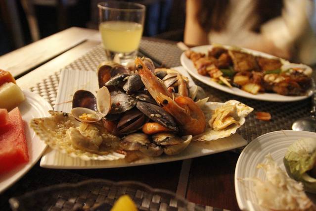 菜品比较丰富,但是口味一般,好吃的菜色没几个。尤其是那个蟹腿,不好吃。饮料也比较一般,我连咖啡都没有找到,呜呜。虽然是BBQ,但是烧烤的种类好少。而且虾和芒果螺什么的,炒一盘都好慢,要排队。