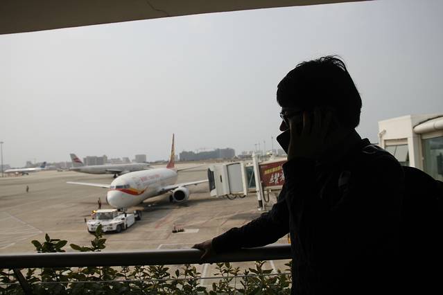 到了机场,就到春秋早航班的地方办理值机,走到门口一看,满满的人啊。只有两个柜台在办理值机手续,一个女保安拦着黄线,一次放一家进去,两个柜台就成了 X 型的排队模式,到了放行口的地方就是谁挤进去谁去继续排队,真是无语了。不知道搞这多此一举的放行意义何在。总之排了很久的队伍,我们才办完值机。等安检进去,没等几分钟就登机了。
