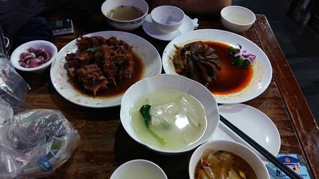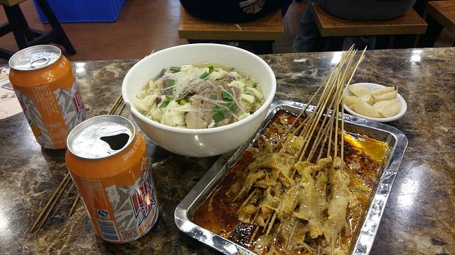 羊头泡馍,这个要好好说道说道。来西安必吃,我们也就做了功课,可是把攻略落在车上了,到了回民街一看,老米泡馍每条街都有(后来回去一看,应该是老米小雨泡馍,攻略白做了),也不知道那家是,就随便进了一家门口写着老店的老米泡馍,进去一看还比较干净,就是价格小贵。点好以后,我辛苦掰了半天,记得网上说过越小越好吃,就认真掰了很久。说实话,真的挺辛苦的,那馍挺结实的。掰完了以后,把碗给服务员假羊肉汤。我和老公就点了一碗,也没有吃上,真的挺充饥的。还在他们家点了涮毛肚,和青岛吃到的不一样,毛肚很嫩,特别滑,涂了芝麻酱,味道不错。再就是点了冰峰饮料,小时候的味道。
