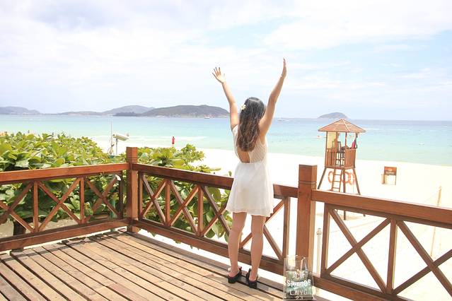 通往天域私家沙滩的台子,天晴的时候,亚龙湾的海好看哒无敌了!!