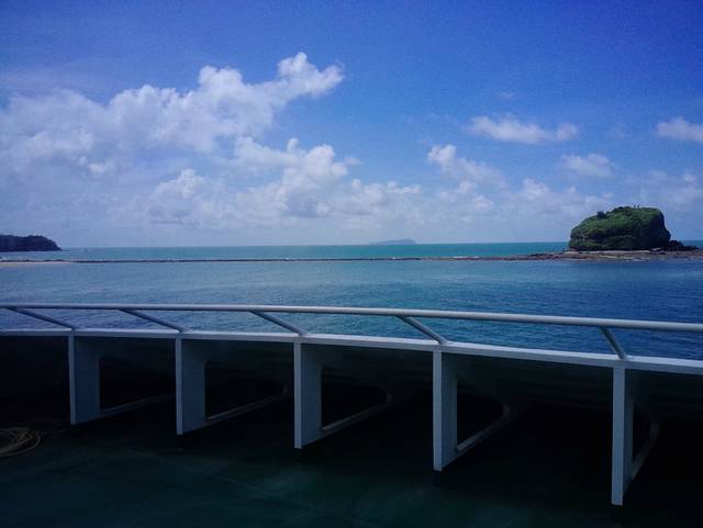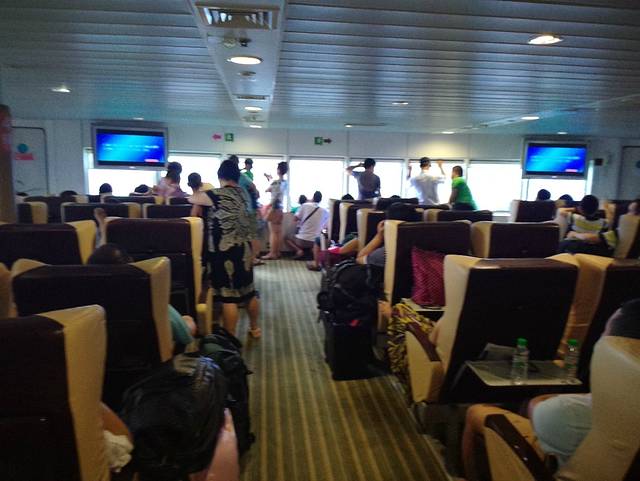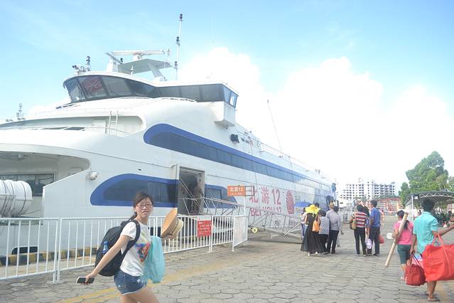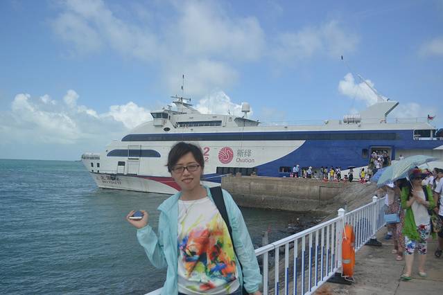 原计划乘坐3路公交车至北海国际客运港(07793882319),酒店大堂退房时服务员说酒店有到客运港的免费电动观光车,再次点个赞。9:00从北海客运港乘坐轮船出发,10:20达到涠洲岛。运气不错,听说很多时候天气不好,前往涠洲岛的轮船会停运一整天。通过淘宝旅行预定的北游12头等舱,单程180元+20元服务费,直接在客运港找淘宝卖家拿票。