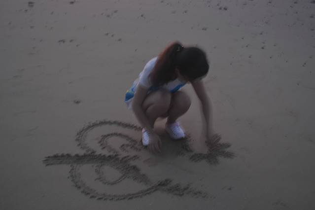 沙滩上总是可以随意的发挥想象,抒发情感。