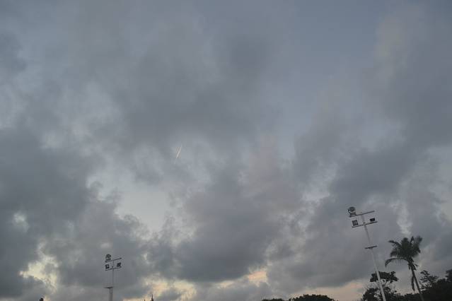 乌云密布的天空中一条金色的线,不知道是神马。