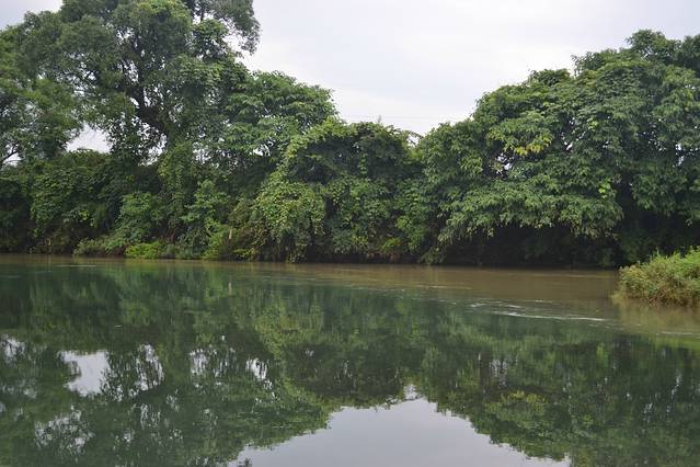 遇龙河位于广西桂林市阳朔县,是漓江在阳朔境内最长的一条支流,全长43.5公里,流域面积158.47平方公里,宽38—61米,深0.5—2米,常年水质清澈,水流缓缓。遇龙河两岸山峰清秀迤逦,连绵起伏,形态万千,江岸绿草如茵,翠竹葱郁,树木繁荫。遇龙河的水如同绿色的翡翠,清澈透亮,鱼儿闲游,水筏飘摇,一一可见。微风拂过水面,泛起阵阵涟漪,如同小提琴奏出的音符,静静的,轻轻的。尤其是从遇龙桥到工农桥15.36公里水程,有28道堰坝,景点百余处,整个遇龙河景区,没有任何所谓现代化建筑,没有任何人工雕琢痕迹,没有任何一点都市喧嚣,一切都是那么原始、自然、古朴、纯净。如果把漓江比成“大家闺秀”,那么遇龙河则是让人怦然心动的“小家碧玉”,人们也称“小漓江,不是漓江胜似漓江。
