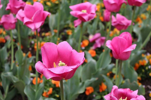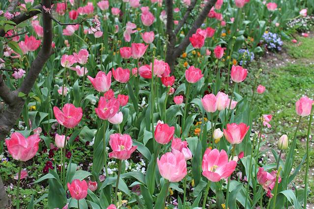从4号门进去以后,左边是一大片郁金香,各种颜色都有很漂亮,眼球一下就被这片郁金香吸引了;右边也种了一些其他品种的话,有香水百合,不过相对于郁金香不是很起眼~