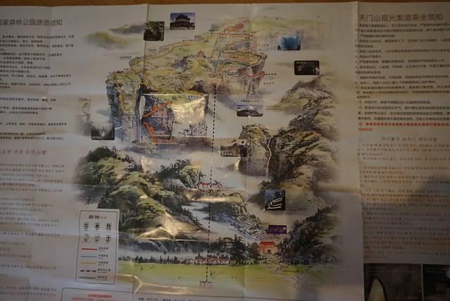 4、游园有多种线路选择,总体原则是记住上山和下山的方法,具体有百龙天梯、天子山缆车(在修)、天子山登山、乱窜坡、砂刀沟,杨家界缆车。
