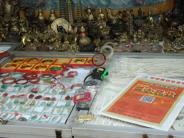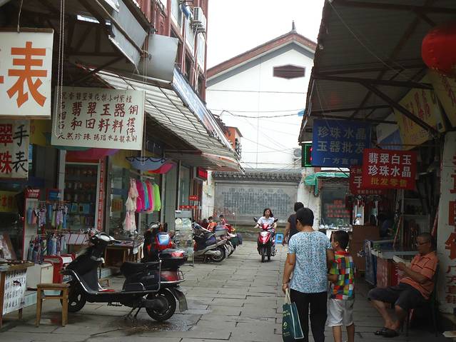 古玩市场很多都是当地人开的店。窄窄的石板路,