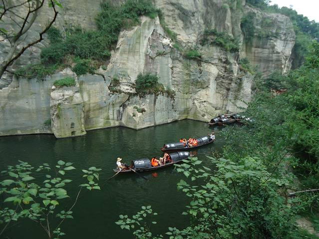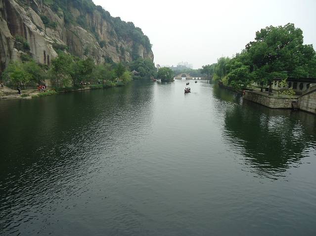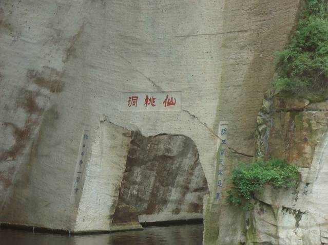 游船观东湖,最奇妙的是近观陶公洞与仙桃洞,可以说未进二洞等于没有到过东湖。陶公洞入口处仅容一艘小舟通行,进入洞内之后却是另有洞天,在洞底仰望小片天空,坐井观天的意境悠然在目。