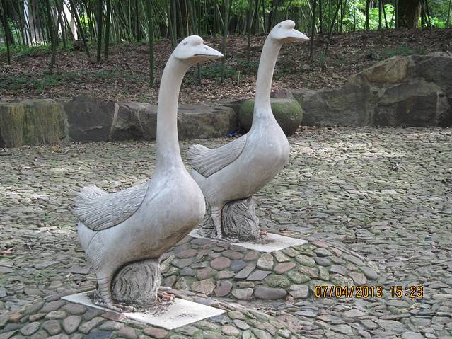 鹅池,王羲之最喜欢鹅,因为它的脖子修长优雅,符合书法的美