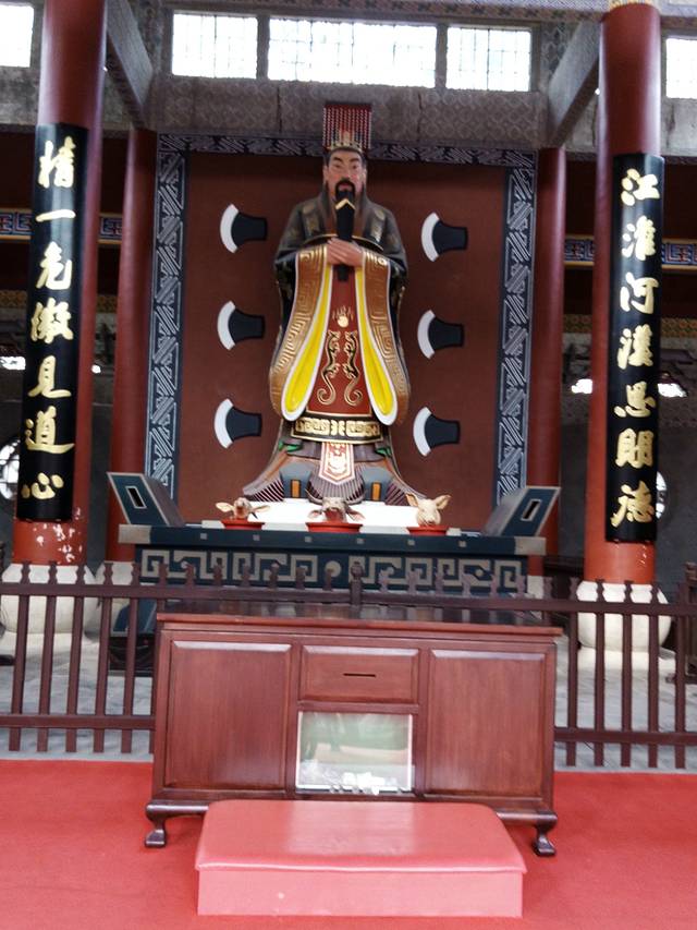 大禹陵在的地方就是传说中的会稽山了,在山下遥望可以看到大禹雕像,不过还是爬上山看更好。也不是很高,绍兴的山都不高,丘陵,1小时差不多了。现在大禹陵在修缮,不能上山,只能在下面遥望大禹的雕像了,绍兴人凭借身份证免费参观。我去这挺麻烦的,需要换车,只有2路和10路车能到这。能看的也就是大禹殿,也有大禹像的,可以拜一下。