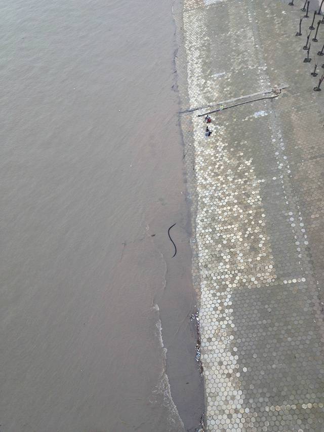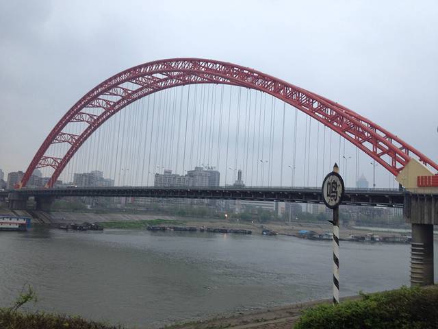 从桥上俯视长江,那蚂蚁大小的正是人儿,可见大桥之雄伟高大。