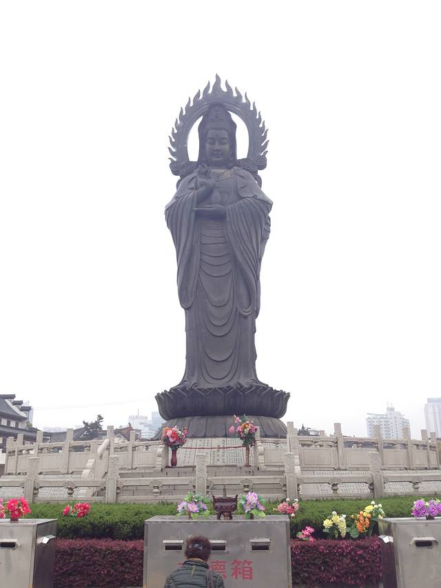 这个观音像好高啊,不过最有意思的是它是双面的:这是正面,求姻缘者要诚心磕头咯。