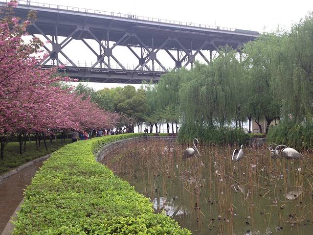 大桥旁边就是大禹神话园,免费参观,里面的景色很不错,特别是樱花和杨柳林,而且也是排长江大桥比较不错的地方哦。