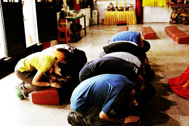 我们起得更早了。因为要参加早上的祈福法会,我们迎着清晨的露珠出门了。