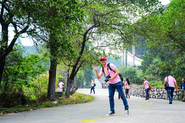丰盛的早餐过后,10位旅游达人开始迈向山顶。小伙伴们穿上观音山派发的粉色T恤显得活力四射。