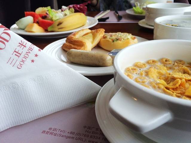 樟木头三正半山酒店的自助早餐丰盛美味,款式多样。让人垂涎三尺,食欲大增。