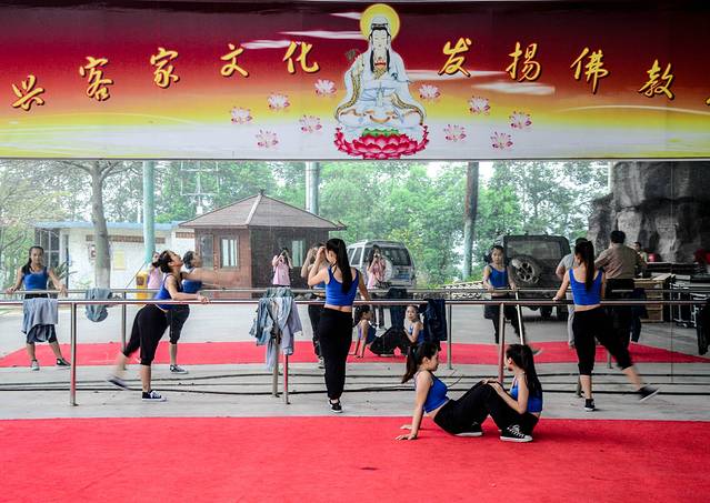 走到会展中心的路口,许多花季年华的姑娘在训练舞蹈。个个“身怀绝技”展示了很多高难度的动作。