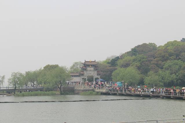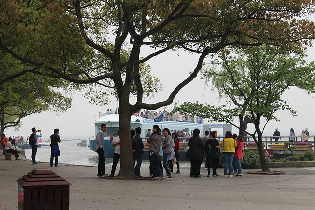 坐船的人很多,看那些小黄帽都是在排队的,所以本人推荐先去坐船到太湖仙岛玩。不过不用人多也不用太担心,因为游船发船频率很高,这个队的移动速度还是很快的~