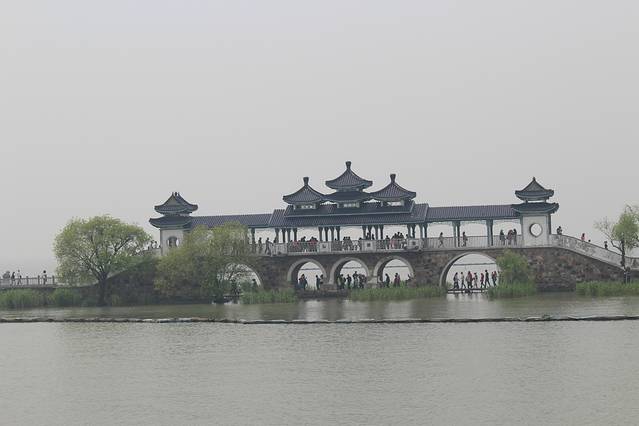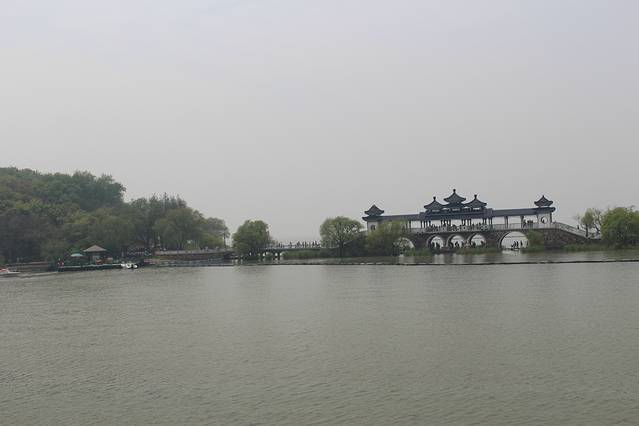 在游船上遥望"会仙桥",很漂亮~连接了两个岛
