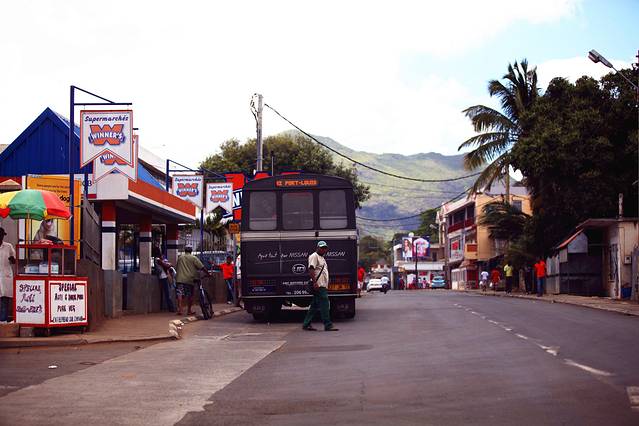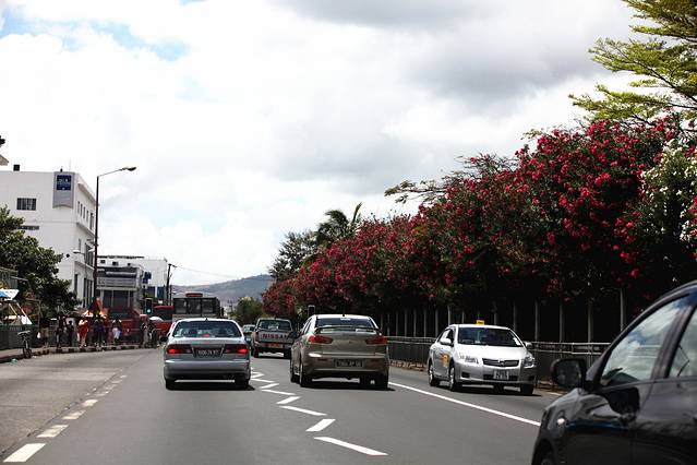 沿街开放着繁茂的艳丽花朵,很有非洲的感觉,前方就是首都路易港了