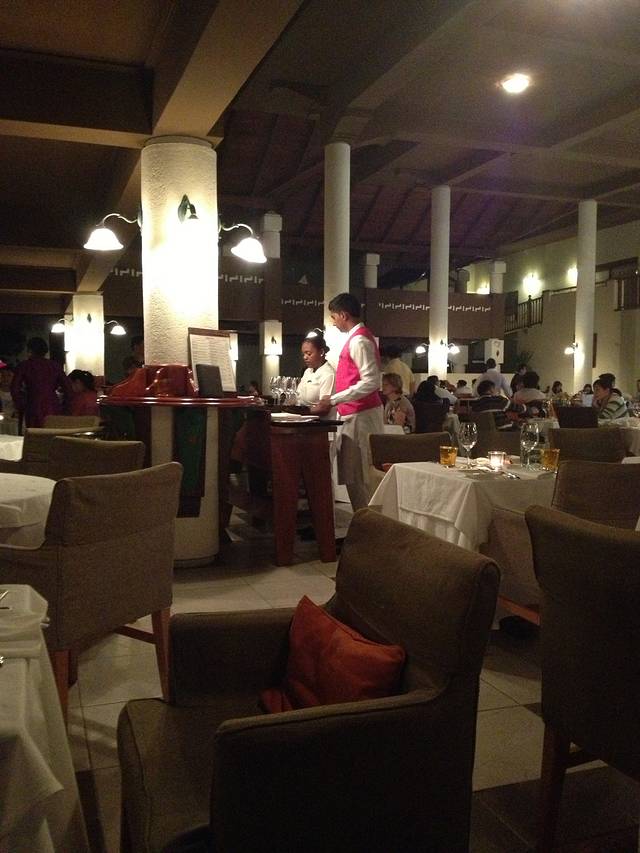 浑浑噩噩十个小时,吃了三顿饭,看了大半本《霍乱时期的爱情》终于到了目的地,当地时间下午6点,我们在取行李的地方等到大家都走了,还是没有等到最最重要的那个行李,这时候一个毛球机场的工作人员拿着单子来询问上面的名字是不是我们,我一看果然就是我们,她说那个箱子在香港中转的时候没有及时搬上我们的飞机,现在已经跟下一班经迪拜飞毛球的航班运来这里了,明天下午到,她会直接送到我们酒店去,然后说2000卢比,我们听得一头雾水,以为要给2000卢比做运费,后来才听明白她要给我们2000卢比的赔偿,我俩乐的屁颠屁颠的,领了钱,又去柜台把200美元换成卢比,跟着地接导游去了索菲特,到了酒店已经8点多,酒店接待我们的本地姑娘叫Sophia说着很流利的中文,大家如果住索菲特有什么事情跟酒店沟通不好或者想预订一日游之类的都可以去前台找这个姑娘。我们被安排住到海景沙滩房,匆匆吃了晚饭,累的精疲力尽,倒头就睡。。。。