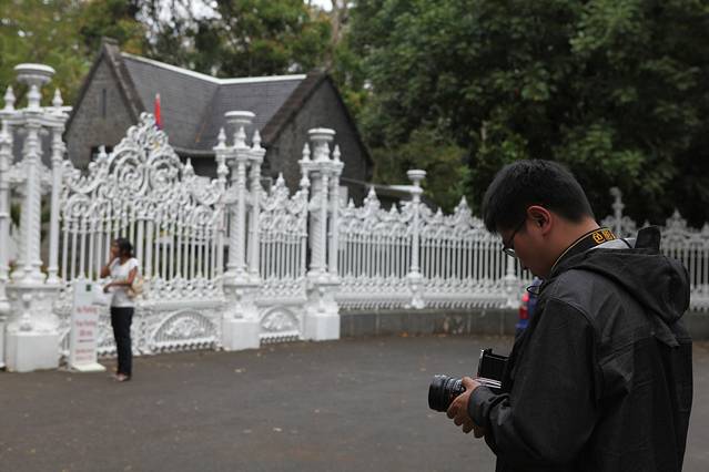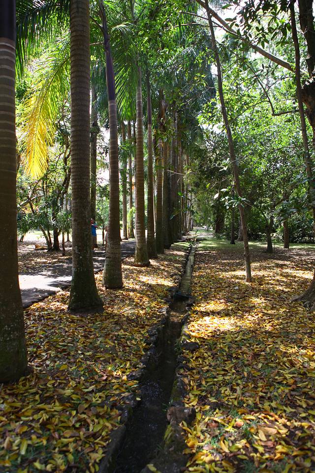 从路易港出来再一路向北,半个小时就到了庞普勒穆斯皇家植物园(The Royal Botanical Garden of Pamplemousses),这个植物园真心的不太好找,幸好一路上有遇到好心的当地人为我们指路。这是植物园的正门。顺便说一下,停车其实是免费的,但是会有别有用心的当地人跟你要押金,说回来的时候还给你,但是想想也知道不可能见到回头钱了。