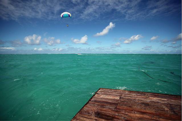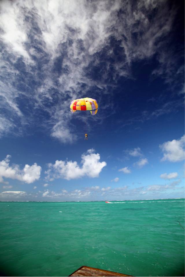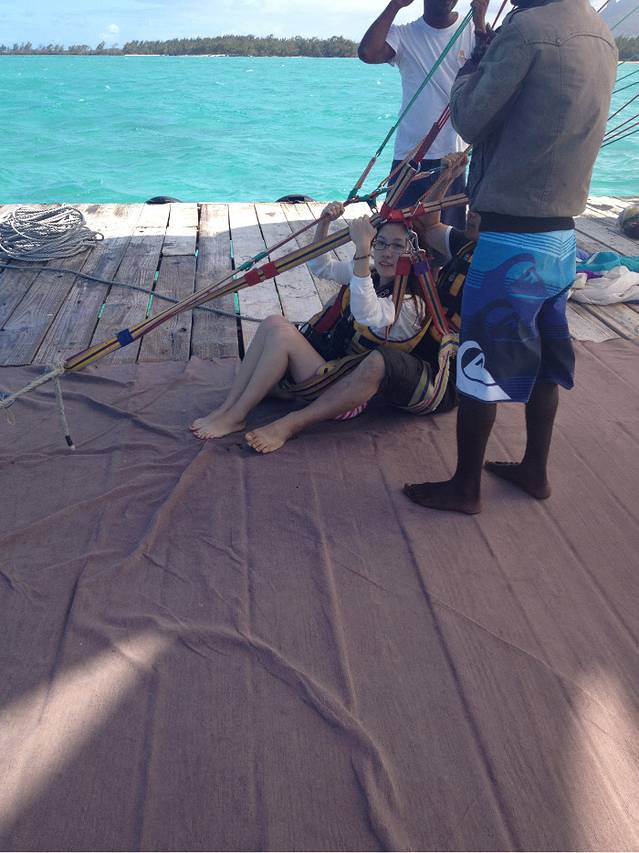 吃完饭之后,讲好了拖伞的价钱,最后是1500卢比两个人,我们到了准备拖伞的海中间的一块大木板上,木板随着海浪一直在摇晃我中午又喝了好多酒,想着一会要到那么高,就忍不住开始有反胃的感觉。