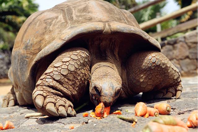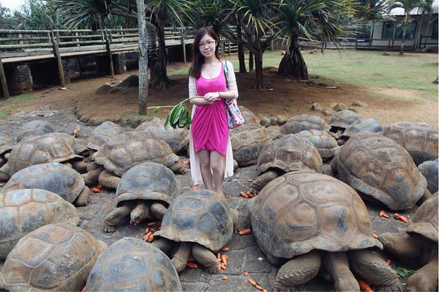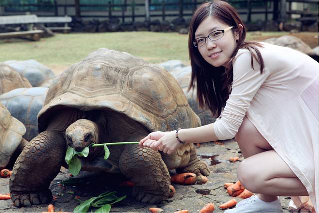 终于见到传说中的象龟了,我很不淡定啊,这只还算是小的,我很忐忑的想坐上去试试,它突然就开始爬了,原来是要吃胡萝卜。。。